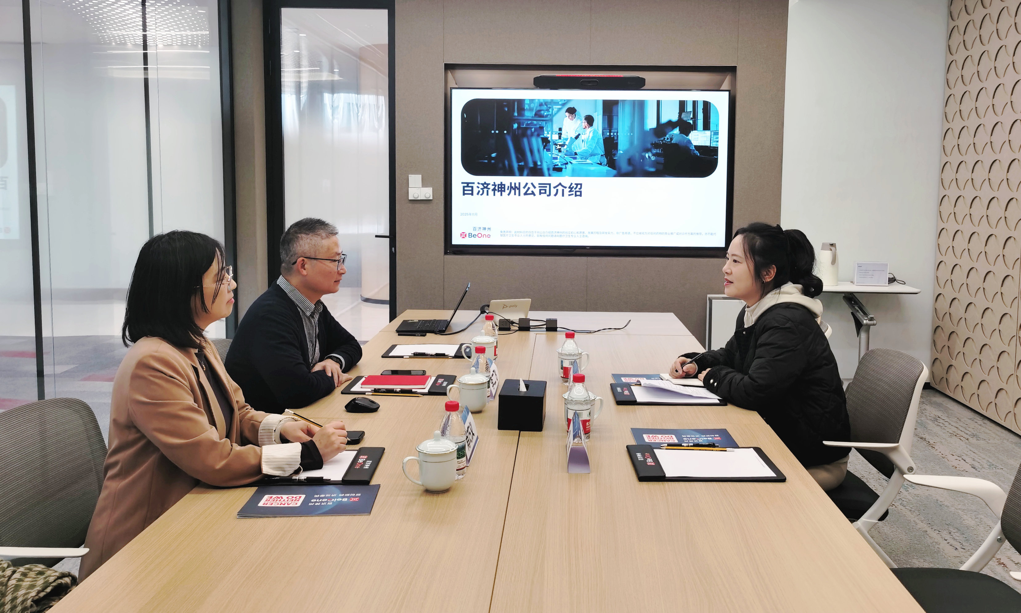 11月21日,协会秘书长周婷晶、信息部副主任宦敏拜访了百济神州(上海)生物医药技术有限公司,百济神州(上海)生物医药技术有限公司华东区域政务负责人李二飞、政府事务经理肖巧义接待来访。双方就行业发展趋势、企业服务需求及未来合作方向等议题展开深入交流。